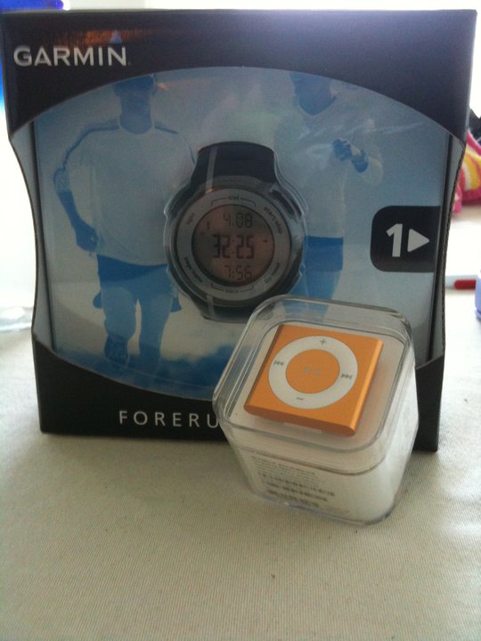 *The above picture contains the best purchases/gifts EVER! My Garmin keeps me on track and my shuffle lets me jam out without the added weight of my iphone. Also, the Garmin allows me to track my progress week to week, month to month and determine where I need work.